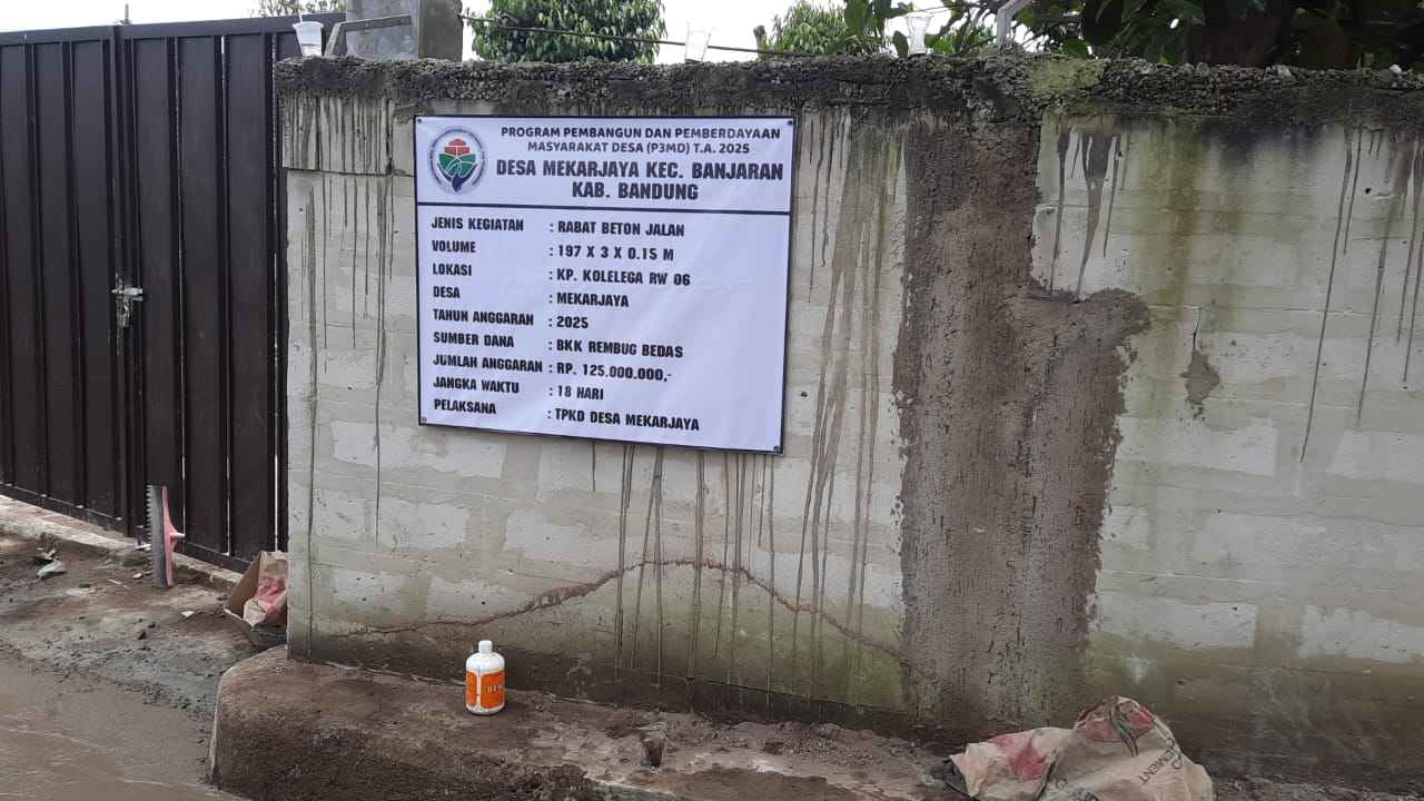 Pelaksanaan kegiatan dilaksanakan pada hari Minggu 07 / 09 / 25 oleh tim TPKD Desa Mekarjaya untuk memperdayakan masyarakat setempat,Dengan volume 197 x 3 x 0,15 meter