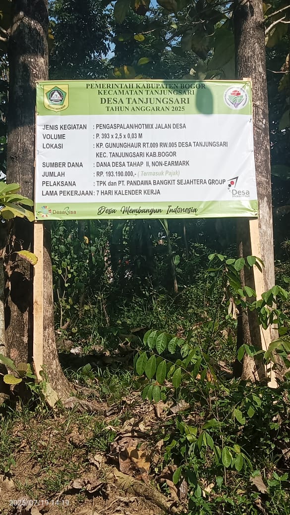 Bogor, MMJ.- Pemdes tanjungsari realisasikan pembangunan jalan pake hotmix sumber anggaran Pake dana desa DD Tahap dua tahun 2025.