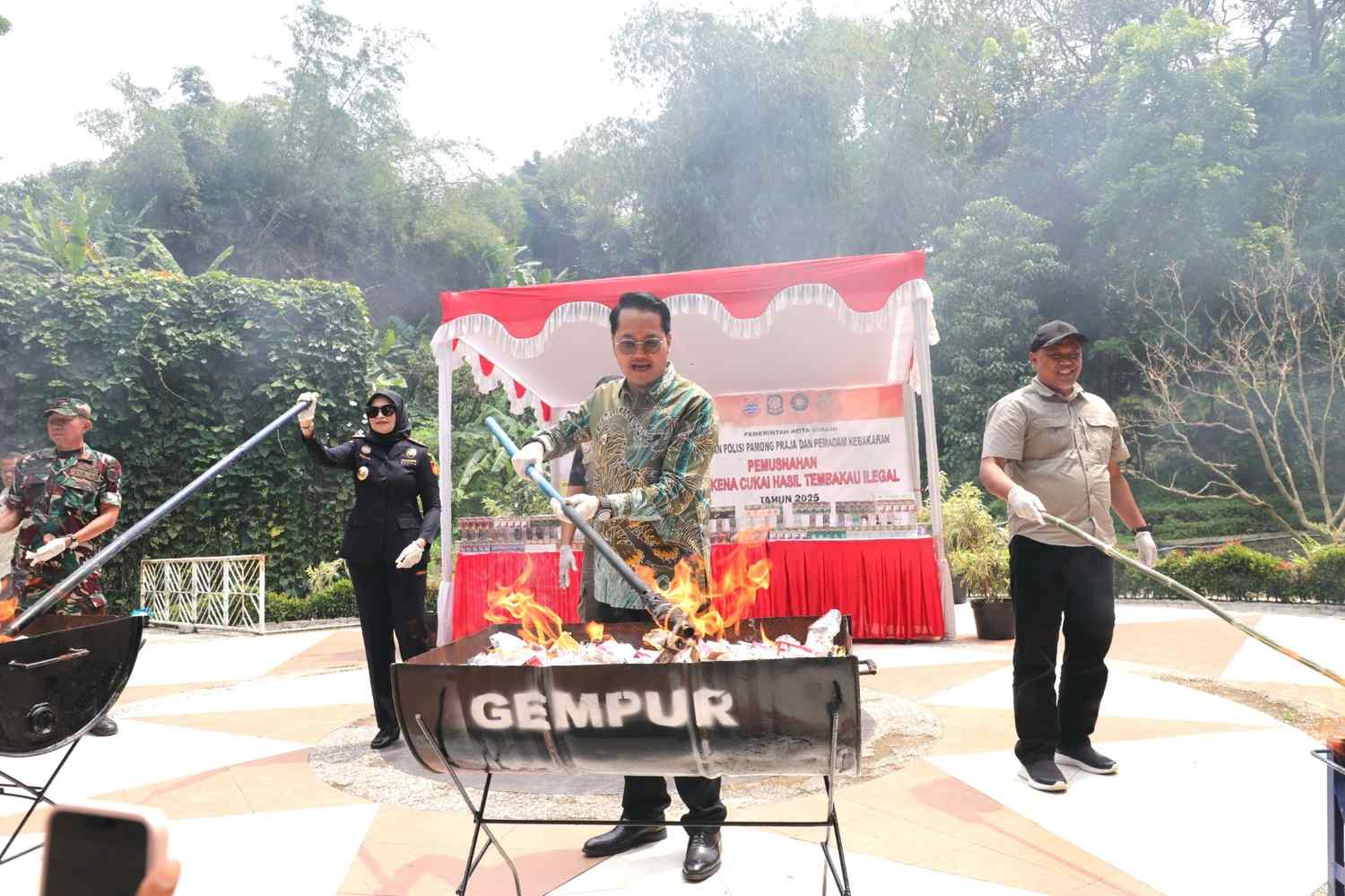 CIMAHI, MMJ– Pemerintah Kota Cimahi melaksanakan kegiatan Pemusnahan Barang Kena Cukai Hasil Tembakau (BKCHT) Ilegal di Taman Plaza Rakyat Komplek Perkantoran Pemkot Cimahi, pada Kamis (25/9/2025).